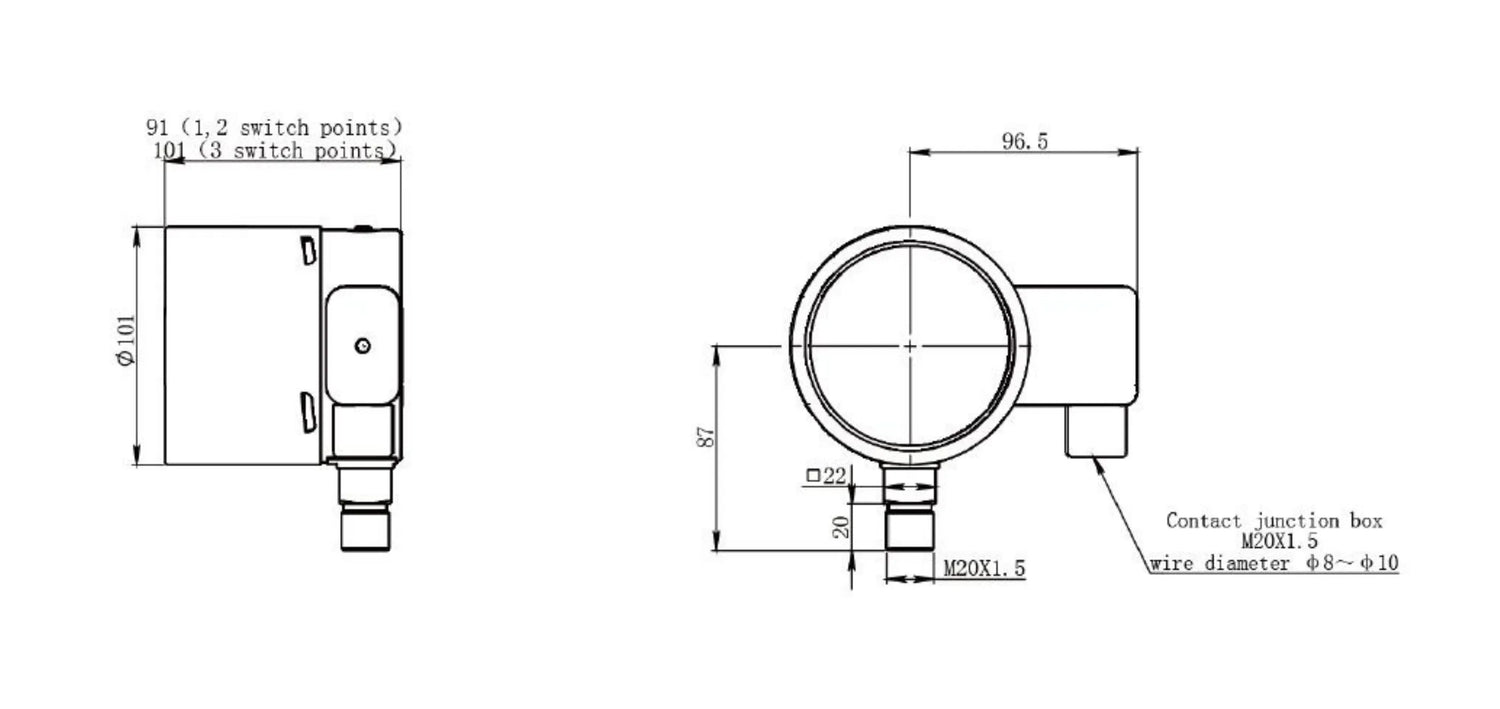 | Options | Oil-filled Full Range Indication: Class 1.0 Power-frequency withstand voltage: 2.5kV 50/60 Hz 1min Wide temperature range -60°C to +60°C Can detect SF6, Air, N2, SF6 + N2 and other gases |